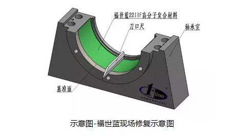 此次(cì)修複工藝(yì)采用福世藍技術(shù)刮研法修複(見下圖),首先在待修(xiū)複部位塗抹福世藍高分子複合材料2211F,然後利用(yòng)刀口尺沿軸(zhóu)承(chéng)室基準麵刮出基準尺寸。