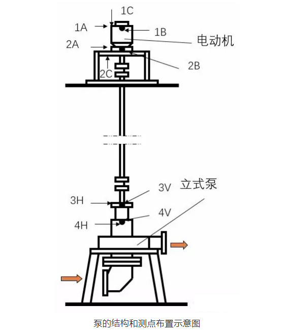 該(gāi)立式泵多次發生泵(bèng)軸斷(duàn)裂,斷裂處緊靠葉輪壓緊螺母處。故障現象是:開始振動大(3V和4V處Z大),葉輪壓緊螺母鬆動。隨後用環氧粘住葉輪壓緊螺母,能有效防止(zhǐ)螺母鬆動。然而,之後許多泵出現葉輪軸斷裂的災難(nán)性破壞。於是,決定進行監測分析:1.測定振動;2.評定振動嚴重程度;3.診斷潛在的故(gù)障;4.提出有效的(de)排故措施。