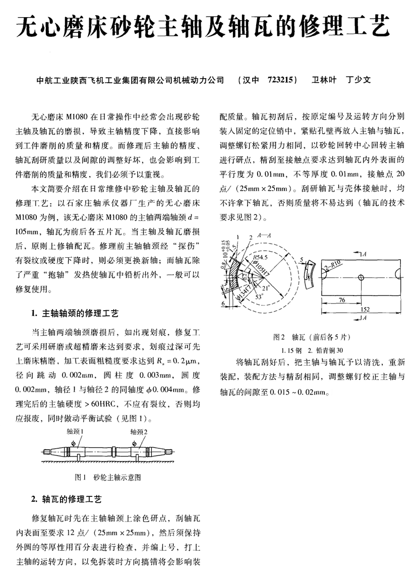 無(wú)心磨床砂輪(lún)主軸及軸瓦(wǎ)的修理工(gōng)藝