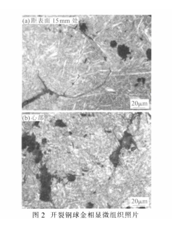 綜(zōng)上所述,由於鋼球淬火加(jiā)熱溫(wēn)度過高(gāo),隨後冷卻速度不均勻,冷卻(què)速度快的地方首先形成馬氏體(tǐ),體積膨脹,由於晶界處過燒形成裂紋發生開裂,並且沿晶界向內發展,Z終導(dǎo)致鋼球開裂。