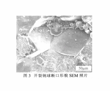 宏觀(guān)分析結果表明由內向(xiàng)外的多條裂紋共同導致鋼球開裂,金相組織和SEM觀察結果表明鋼球有過燒組織,晶粒粗大(dà),並且有珠光體相(xiàng),說明鋼球在淬火過程中加熱溫(wēn)度(dù)過高,同時冷卻速度不均勻;硬度測試結果表明鋼球在不同方向上冷卻速度(dù)不均勻。